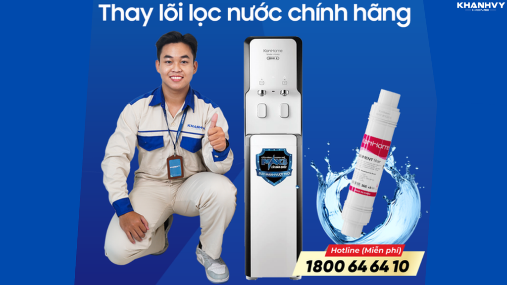 - Cam kết 100% lõi lọc chính hãng: Khánh Vy Home là đối tác của các thương hiệu lớn. Chúng tôi cam kết mọi lõi lọc đều có đầy đủ giấy tờ CO/CQ, tem mác rõ ràng. Chúng tôi sẵn sàng đền gấp 10 lần giá trị nếu khách hàng phát hiện hàng giả, hàng nhái.