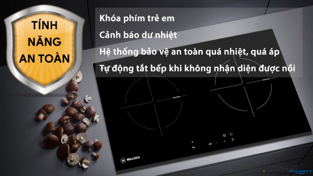Bếp điện từ Malloca trang bị nhiều tính năng an toàn