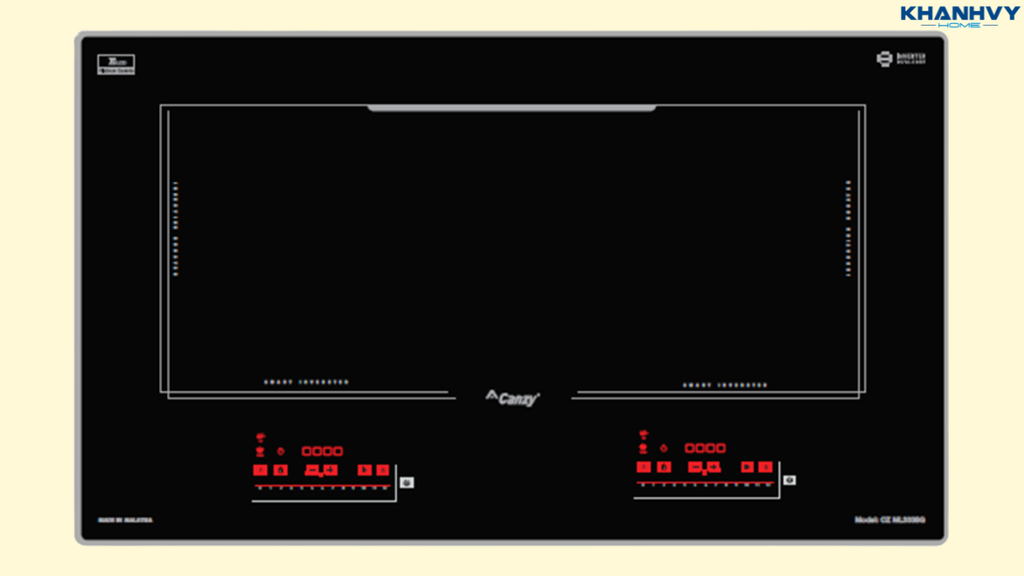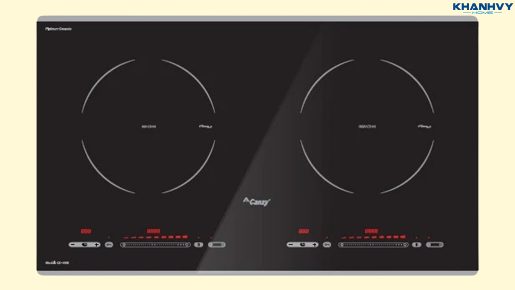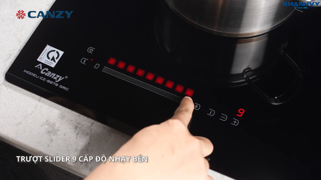 Bảng điều khiển thông minh: Hầu hết các mẫu bếp từ Canzy đều sử dụng bảng điều khiển cảm ứng dạng trượt slide hoặc phím bấm chạm trực tiếp, rất nhạy và dễ dàng thao tác ngay cả khi tay ướt.