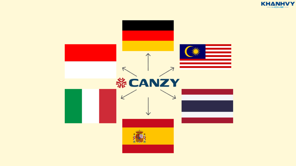 Chính vì mô hình này, khi xem xét một chiếc bếp từ Canzy, bạn sẽ thấy tem "Made in..." ghi rõ các quốc gia khác nhau như: