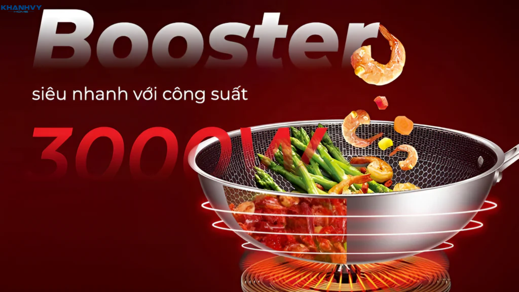 Tự điều chỉnh công suất linh hoạt: Bếp có khả năng tăng hoặc giảm công suất nấu liên tục theo nhu cầu, giữ nhiệt độ ổn định và tránh hiện tượng nóng không đều. Nhờ thế thực phẩm chín đều và giữ được hương vị ngon. Chế độ Booster gia nhiệt nhanh: Tăng công suất tối đa trong thời gian ngắn giúp đẩy nhanh tốc độ nấu, tiết kiệm thời gian đáng kể.