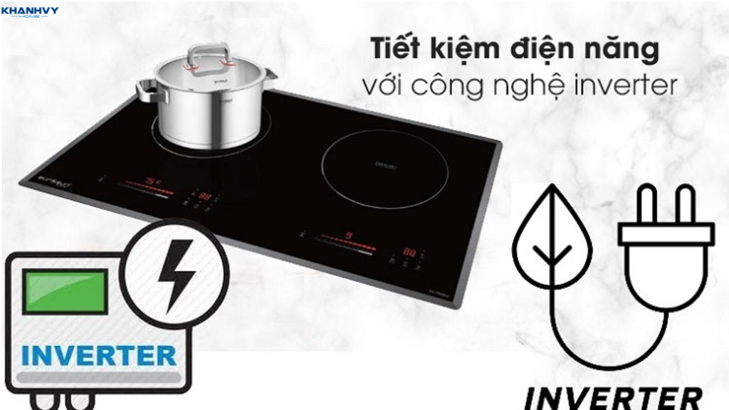 Bếp từ Inverter được trang bị công nghệ biến tần (Inverter) hiện đại, giúp duy trì công suất ổn định bằng cách điều chỉnh dòng điện liên tục mà không cần bật/tắt nhiều lần, từ đó tiết kiệm điện năng và đảm bảo nhiệt độ nấu chính xác, đều hơn.