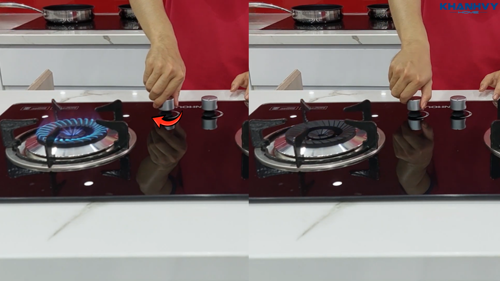 Vặn núm điều khiển cùng chiều với chiều quay của kim đồng hồ đến đến cùng để tắt bếp