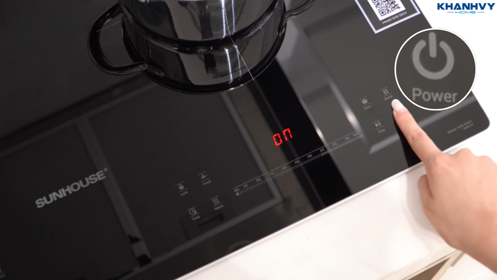 Khởi động bếp điện bằng cách chạm vào biểu tượng Power để bật bếp
