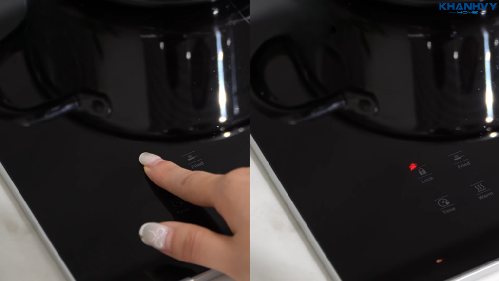 Khóa an toàn trẻ em (Child Lock): Giữ vào biểu tượng chìa khóa khoảng 3 giây để vô hiệu hóa bảng điều khiển, ngăn trẻ em nghịch phá.