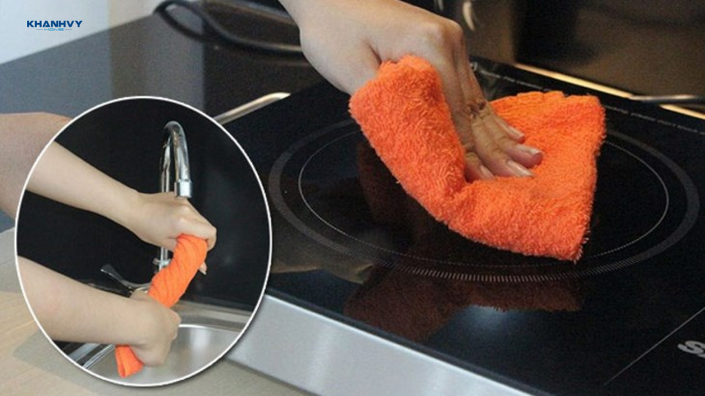 Sử dụng nước ấm và khăn mềm vệ sinh bếp từ