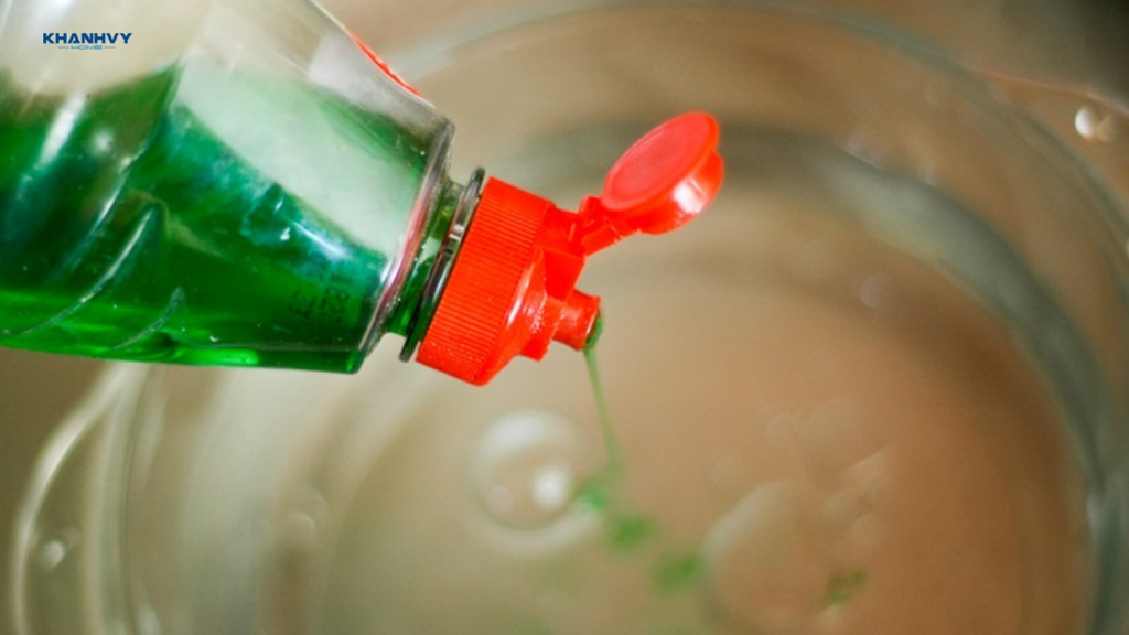 Đối với những vết dầu mỡ bám dính khó xử lý bằng nước ấm thông thường, nước rửa chén pha loãng là giải pháp vừa an toàn vừa hiệu quả. Phương pháp này không chỉ giúp loại bỏ hoàn toàn lớp dầu mỡ mà còn giữ cho mặt kính sáng bóng, sạch sẽ như mới.
