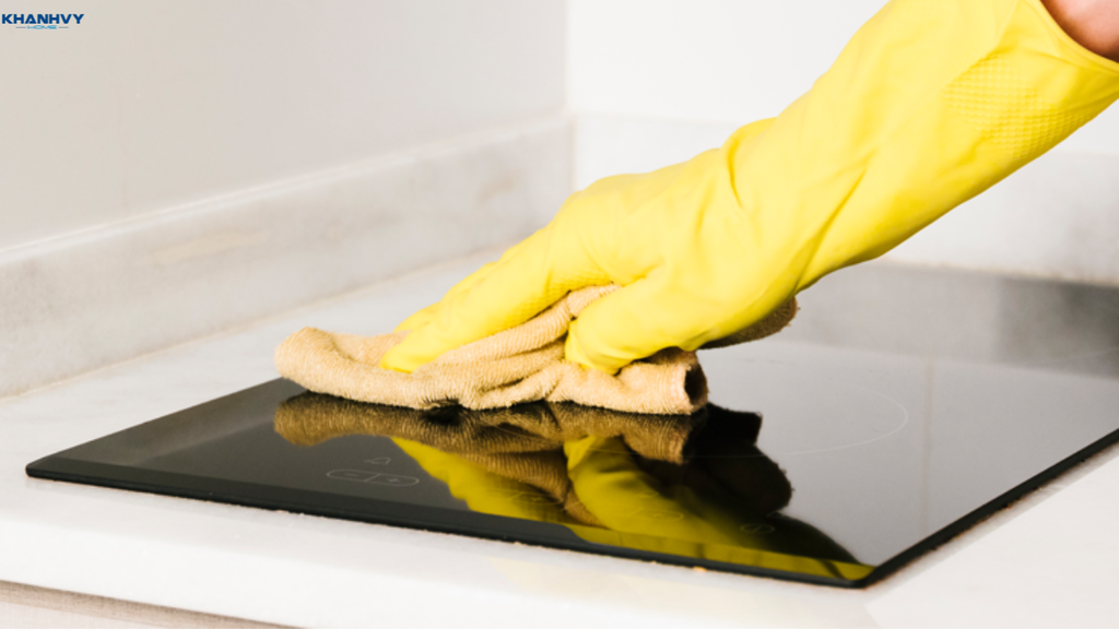 Vê sinh bếp sau khi ký hiệu cảnh báo nhiệt dư đã tắt
