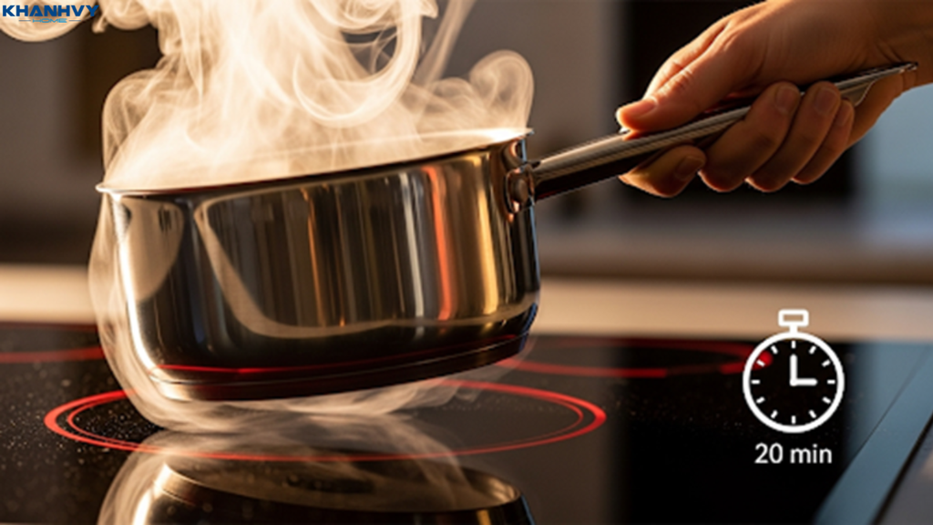 Kích hoạt chế độ tự ngắt an toàn: Nhiều dòng bếp hồng ngoại hiện đại được trang bị tính năng tự động tắt sau một khoảng thời gian nhất định nếu không có bất kỳ thao tác nào từ người dùng (như thay đổi công suất, nhiệt độ). Đây là một tính năng an toàn để phòng trường hợp người dùng quên tắt bếp.
