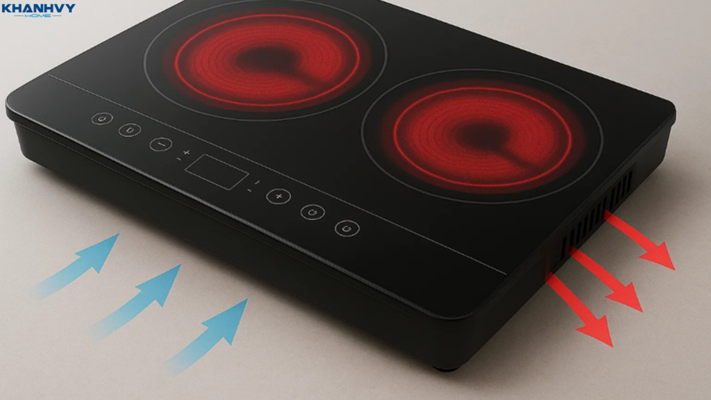 Vấn đề về nhiệt độ và tản nhiệt: Bếp hồng ngoại sinh ra một lượng nhiệt rất lớn. Nếu quạt tản nhiệt bị kẹt, bám đầy bụi bẩn hoặc các khe thông gió xung quanh bếp bị bịt kín, nhiệt độ bên trong sẽ tăng cao quá mức cho phép. Lúc này, cảm biến quá nhiệt sẽ kích hoạt và ngắt bếp để đảm bảo an toàn.