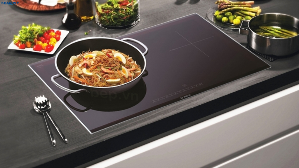 Bếp từ Bosch nổi bật với công suất lớn, hiệu suất nấu nhanh và tiết kiệm điện năng nhờ công nghệ Inverter hiện đại. Bosch còn tích hợp nhiều tính năng thông minh như cảm biến nhiệt PerfectFry, bảng điều khiển DirectSelect, PowerBoost giúp tăng nhiệt nhanh, khóa an toàn trẻ em và hẹn giờ nấu tiện lợi. Tuy nhiên, bếp từ Bosch có mức giá cao, phù hợp với người dùng ưu tiên chất lượng và công nghệ vượt trội, sẵn sàng đầu tư chi phí lớn cho bếp.