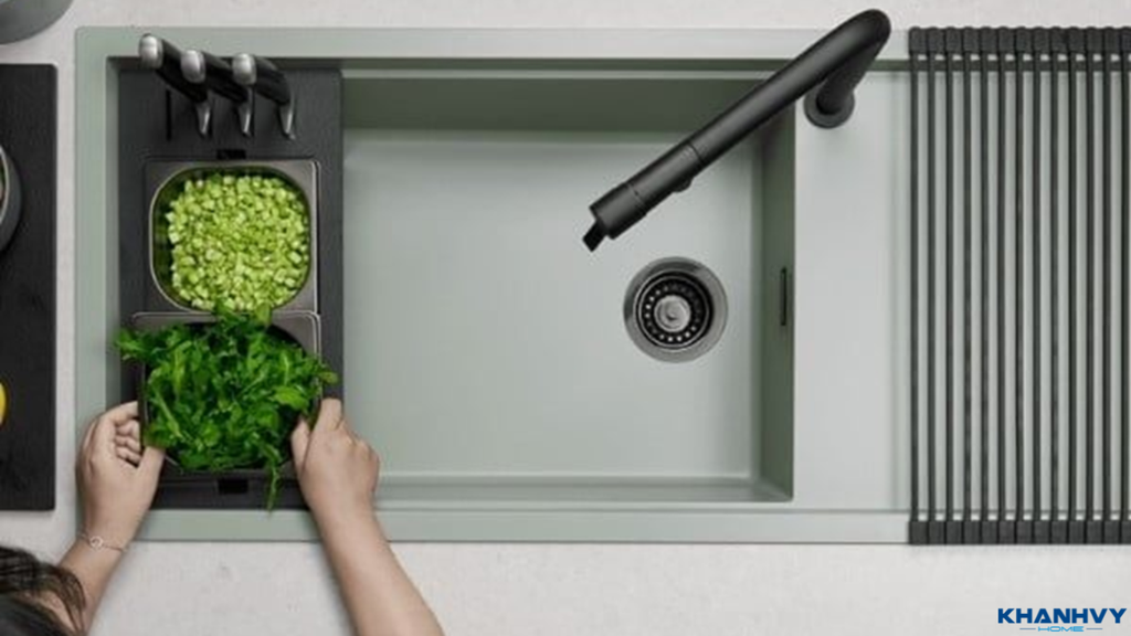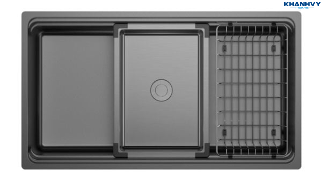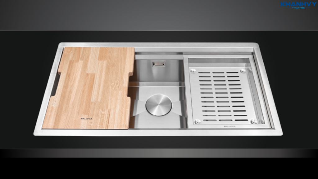 Phù hợp với: Những không gian bếp hiện đại, sang trọng, cần tối ưu hóa diện tích sử dụng và đề cao sự tiện lợi với bộ phụ kiện đầy đủ (Siphon, giá úp chén, chậu rửa nhỏ, 2 thớt inox).