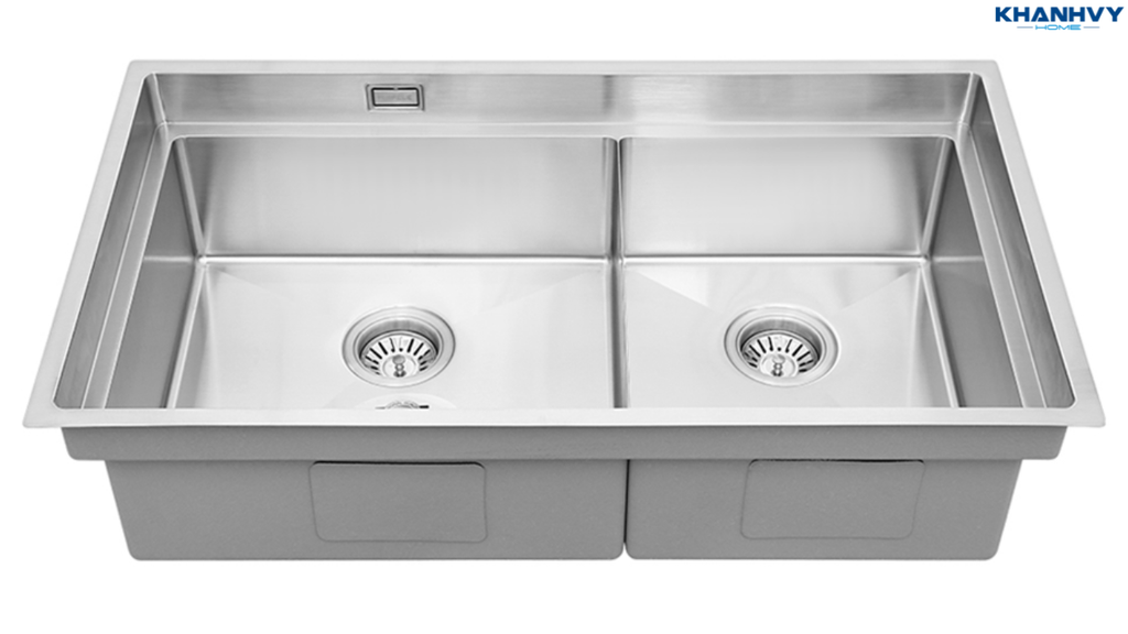 Thiết kế: Hiện đại, sang trọng với hai hộc rửa vuông vắn, rộng rãi, góc cạnh bo tròn tinh tế. Bề mặt sáng bóng, dễ vệ sinh. Lắp đặt linh hoạt (âm hoặc dương) và đi kèm các phụ kiện tiện ích như rổ inox, thớt gỗ.