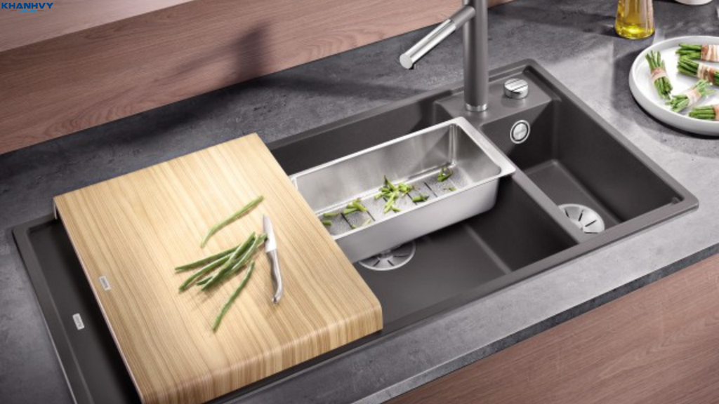 Thớt đặt trên thành chậu là phụ kiện thiết kế đặc biệt giúp tối ưu diện tích không gian bếp, mang đến sự tiện lợi cho quá trình nấu nướng. Với thớt đặt trực tiếp trên thành chậu, người dùng có thể dễ dàng cắt thái nguyên liệu rồi rửa sạch ngay sau đó mà không cần phải di chuyển nhiều, từ đó tiết kiệm thời gian và công sức.