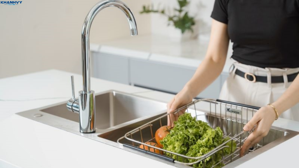 Tăng hiệu quả sử dụng: Các phụ kiện như rổ đựng rau, giá úp bát, vòi rửa linh hoạt giúp quá trình rửa và sơ chế thức ăn nhanh hơn, thuận tiện hơn. Cũng nhờ đó, việc vệ sinh khu vực rửa chén trở nên đơn giản và sạch sẽ hơn.