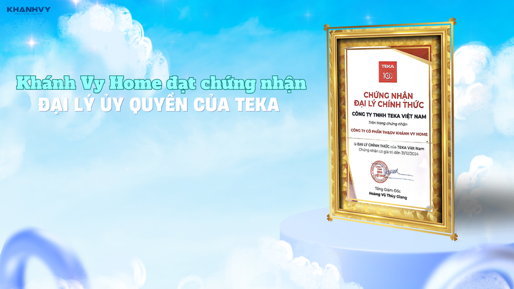 Việc Khánh Vy Home chính thức trở thành Đại lý ủy quyền của TEKA Việt Nam đánh dấu bước phát triển quan trọng trong hành trình khẳng định uy tín thương hiệu. Chứng nhận này là minh chứng cho nỗ lực không ngừng của Khánh Vy Home trong việc mang đến cho khách hàng sản phẩm chính hãng và dịch vụ đạt chuẩn châu Âu.