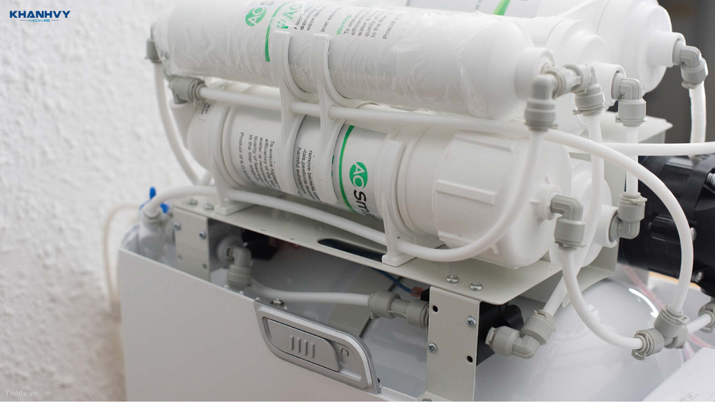 Khánh Vy Home cam kết sử dụng 100% lõi lọc và linh kiện chính hãng A.O. Smith có đầy đủ tem, mã QR và giấy chứng nhận xuất xứ rõ ràng. Các lõi lọc đạt tiêu chuẩn quốc tế NSF/ANSI 58, giúp loại bỏ đến 99,9% vi khuẩn, tạp chất, clo, kim loại nặng mà vẫn giữ lại khoáng chất cần thiết cho cơ thể.