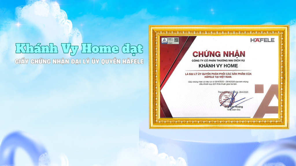 Là đại lý ủy quyền chính thức của Häfele Việt Nam, Khánh Vy Home cam kết mang đến cho khách hàng những sản phẩm chính hãng 100%, có tem chứng nhận phân phối, mã QR bảo hành điện tử và hóa đơn minh bạch.