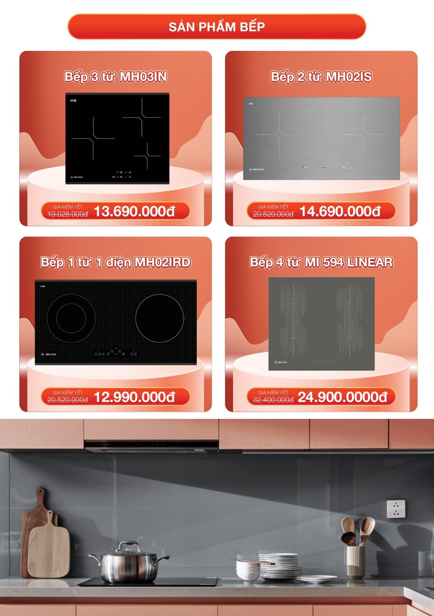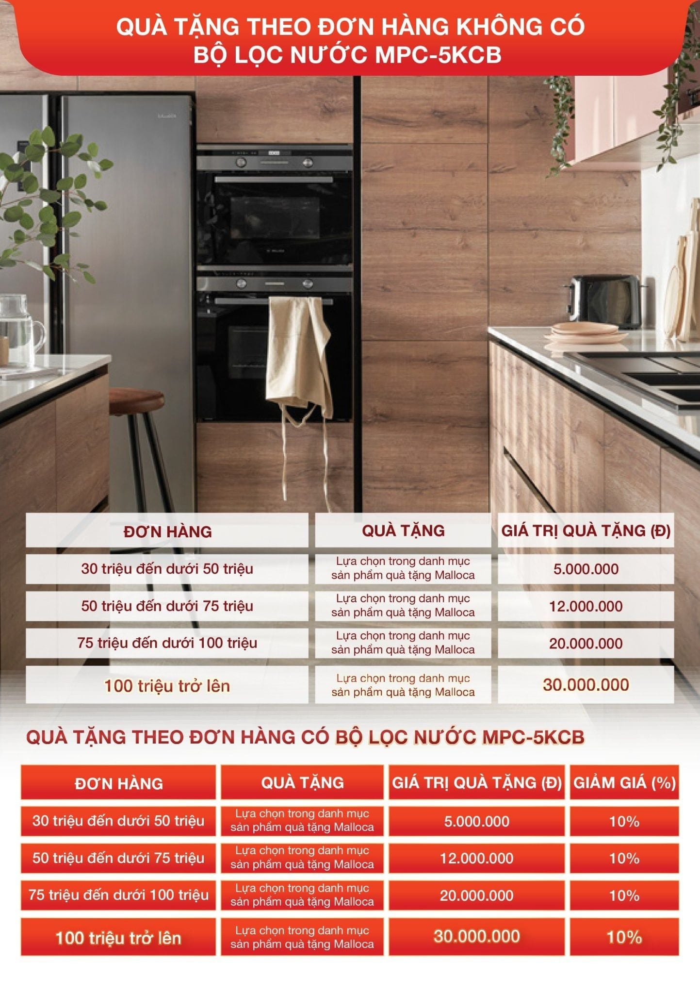 Chương trình khuyến mãi đến từ Malloca. Từ ngày 08/12/2025 đến 10/02/2026 khi mua các sản phẩm Malloca sẽ được giảm giá lên đến 49% và nhận quà tặng khủng lên tới 30 triệu đồng. Nhanh tay đặt mua tại Khánh Vy Home để tân trang lại gian bếp của bạn cho dịp Tết sắp đến.