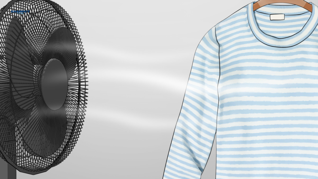 Khi trời thiếu nắng, gió chính là “trợ thủ” đắc lực giúp quần áo khô nhanh. Bạn chỉ cần treo quần áo lên sào hoặc ghế, sau đó đặt quạt điện thổi trực tiếp vào với công suất lớn. Luồng gió liên tục sẽ thúc đẩy quá trình bay hơi nước, giúp quần áo khô đều, hạn chế mùi ẩm mốc. Đây là cách đơn giản, ít tốn công sức và có thể giúp quần áo khô chỉ sau một đêm.