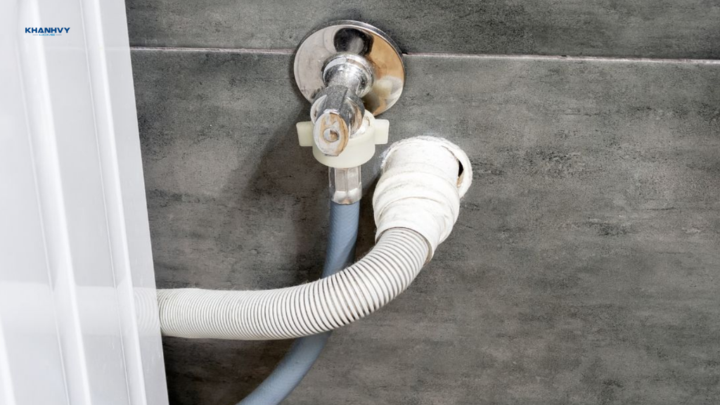 Đầu ống nước tiếp xúc trực tiếp với máy giặt bị hở, lắp đặt chưa đúng cách.