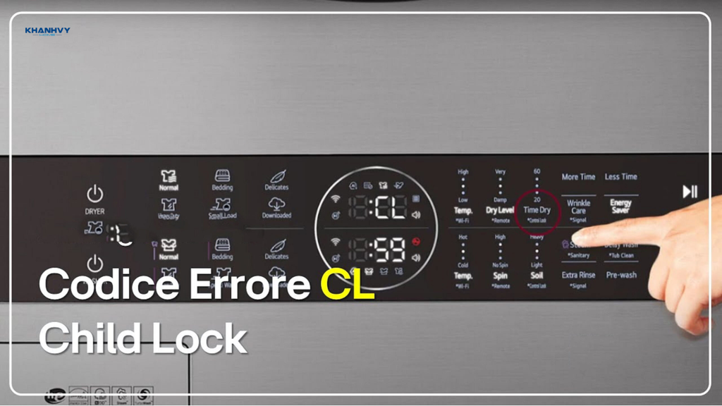Để tắt chế độ, nhấn và giữ đồng thời 2 phím có ký hiệu Child Lock (tùy model có thể là phím Temp + Option hoặc Pre Wash + Rinse) trong khoảng 3–5 giây.