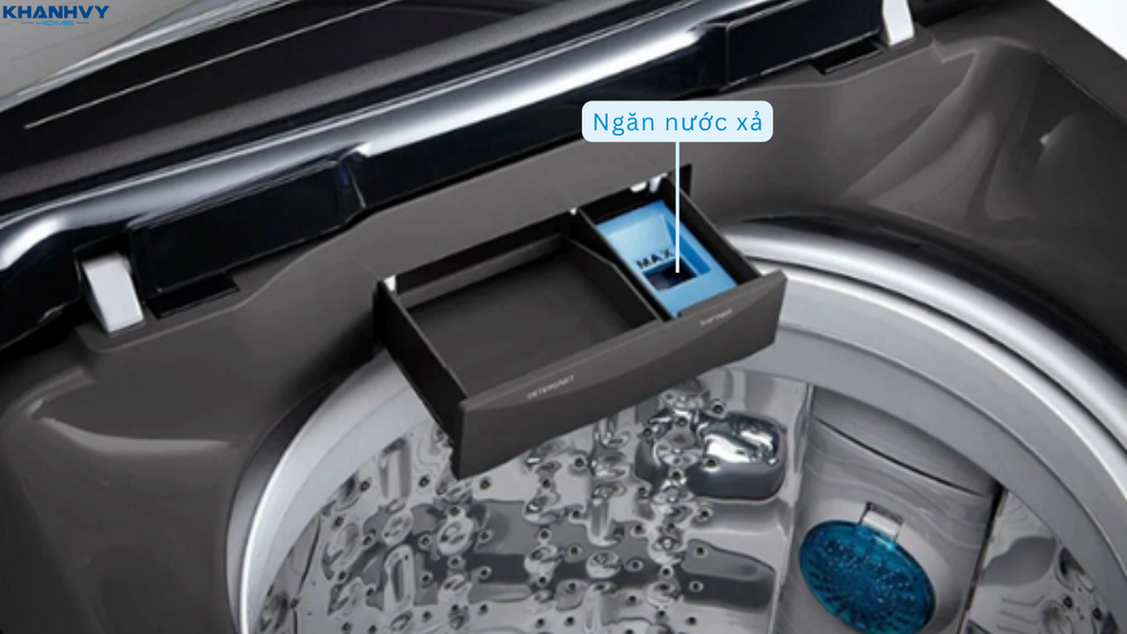 Nhẹ nhàng đổ nước xả vào ngăn chứa đã xác định. Cũng cần tuân thủ nghiêm ngặt vạch "MAX" để tránh tình trạng nước xả bị tràn ra ngoài hoặc chảy vào lồng giặt sớm. Cơ chế hoạt động của ngăn này dựa trên nguyên lý bình thông nhau và lực ly tâm, khi lồng giặt quay đến chu trình xả cuối, nước sẽ được văng lên và cuốn theo nước xả đã có sẵn trong ngăn.