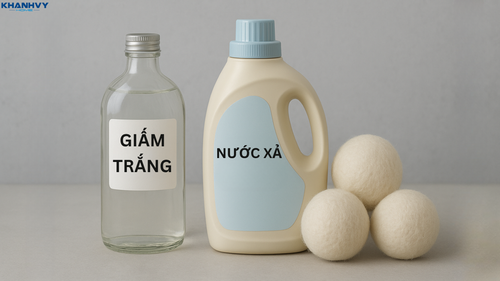 Giấm trắng và bóng len sấy là những giải pháp thay thế nước xả vải hiệu quả và an toàn