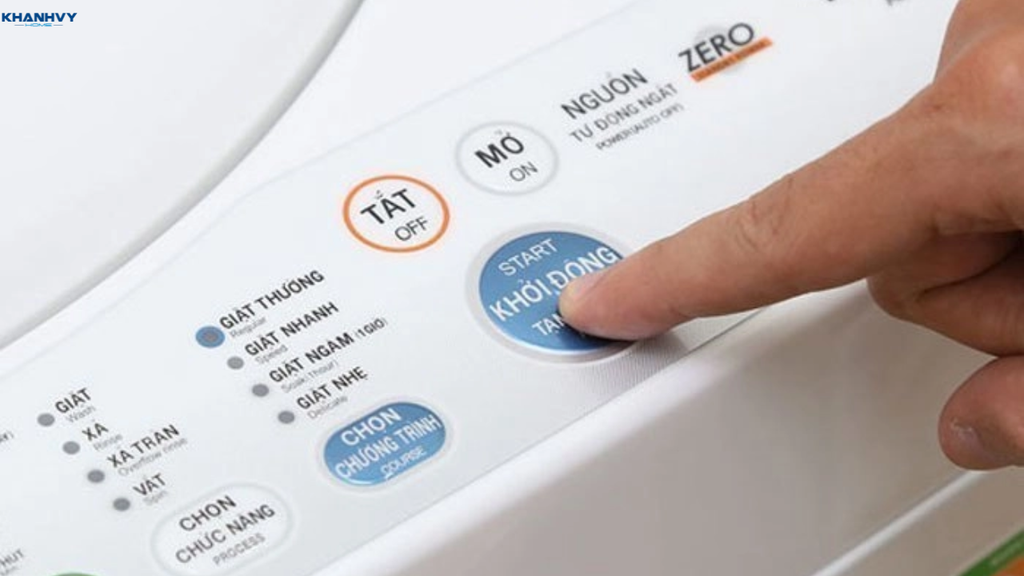 Sau khi đã thiết lập đầy đủ chế độ giặt và nhiệt độ, bạn chỉ cần nhấn nút khởi động để máy bắt đầu hoạt động. Trong quá trình máy vận hành, hạn chế mở cửa lồng giặt, đặc biệt là đối với máy giặt cửa trước vì có thể làm nước tràn ra hoặc ảnh hưởng đến chương trình giặt. Nếu muốn thêm quần áo vào giữa chừng, chỉ nên làm khi máy có chức năng “Add Clothes” (thêm đồ giặt), còn không thì hãy đợi đến mẻ tiếp theo.