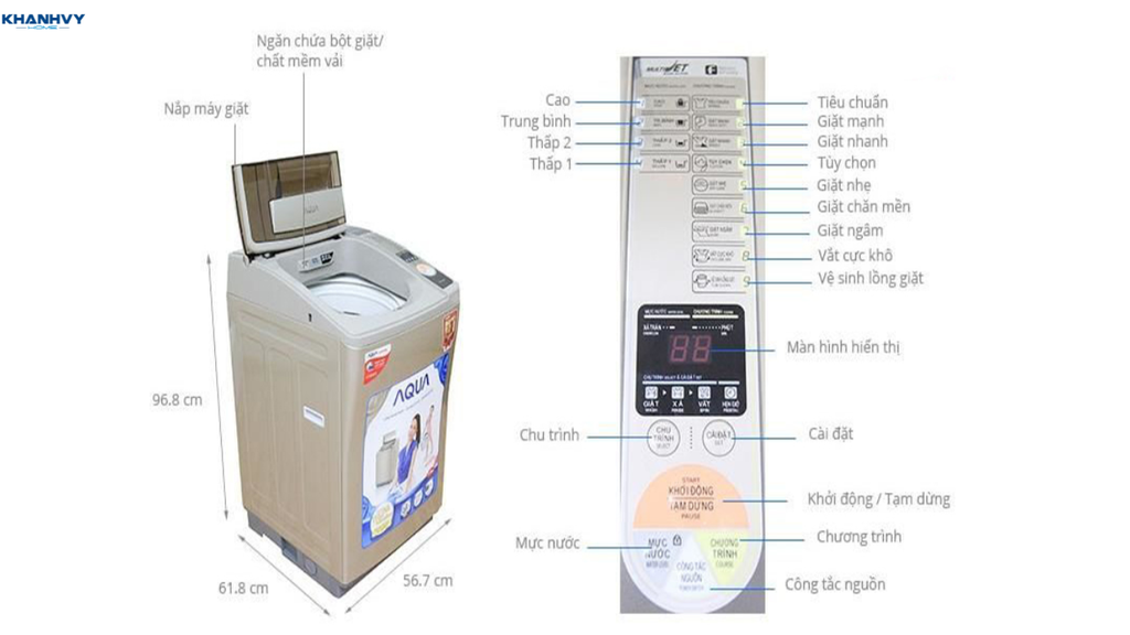 Máy giặt Aqua 9kg là lựa chọn phổ biến của nhiều gia đình nhờ thiết kế hiện đại, dung tích phù hợp và nhiều chương trình giặt tiện lợi. Để khai thác tối đa hiệu quả, người dùng cần nắm rõ cách thao tác trên bảng điều khiển, sử dụng các tính năng thông minh cũng như áp dụng những mẹo nhỏ trong quá trình vận hành. Với những chia sẻ chi tiết từ Khánh Vy Home, bạn sẽ dễ dàng sử dụng máy giặt Aqua 9kg đúng cách, giúp quần áo luôn sạch thơm và máy hoạt động bền bỉ theo thời gian.