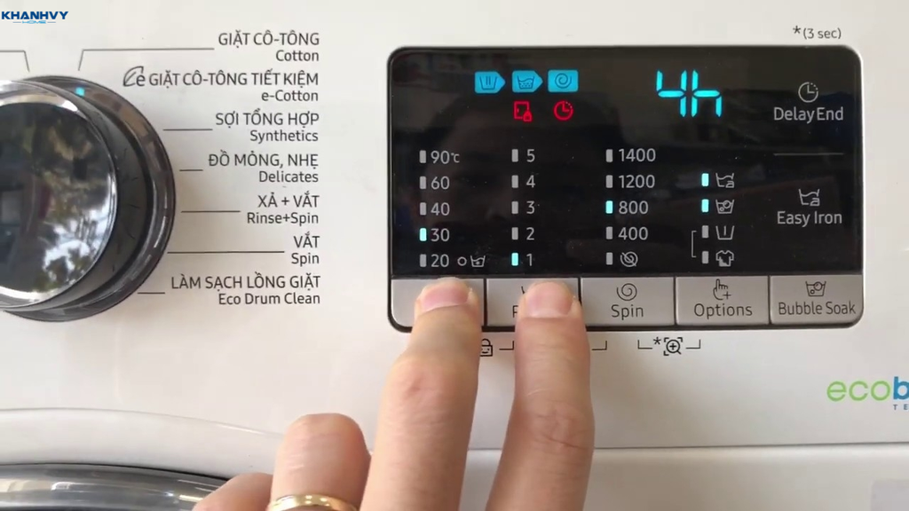 Bước 5: Tùy chỉnh thêm các thông số như nhiệt độ nước, tốc độ vắt, số lần xả nếu cần.