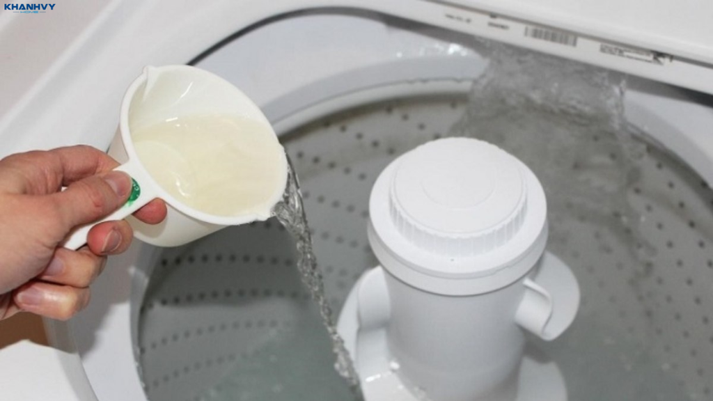 Bước 3: Đổ dung dịch giấm trực tiếp vào lồng giặt rồi bắt đầu chu trình giặt không có quần áo bên trong.