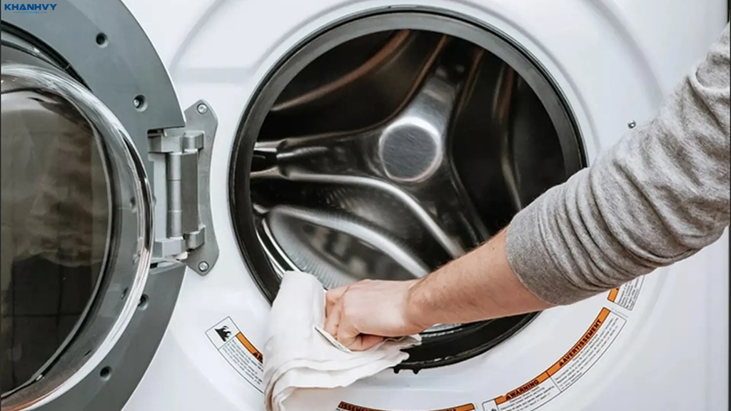 Bước 4: Sau khi chu trình giặt kết thúc, dùng khăn mềm lau sạch bên trong lồng giặt để loại bỏ cặn bẩn còn sót lại.