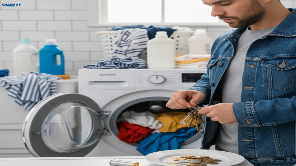 Loại bỏ hét các vật cứng, chìa khóa đồng xu trong túi áo trước khi giặt