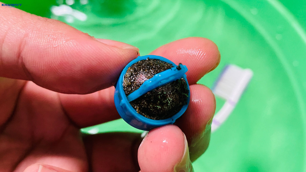 Bước 2: Tháo lưới lọc ra và dùng bàn chải mềm cùng nước sạch để làm sạch cặn bẩn bám trên.