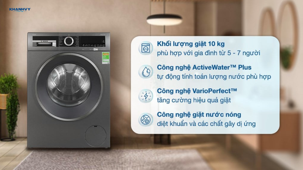 Máy giặt là thiết bị gia dụng quen thuộc trong mỗi gia đình hiện đại, giúp tiết kiệm thời gian và công sức trong việc giặt giũ. Trong số nhiều thương hiệu trên thị trường, máy giặt Bosch được đánh giá cao nhờ chất lượng bền bỉ, thiết kế tinh tế cùng nhiều tính năng thông minh. Chính vì vậy, Bosch đã trở thành lựa chọn của không ít gia đình Việt. Trong bài viết này, Khánh Vy Home sẽ cùng bạn đánh giá chi tiết chất lượng sản phẩm máy giặt Bosch và gợi ý cho bạn Top 5 sản phẩm máy giặt Bosch nổi bật hiện nay.
