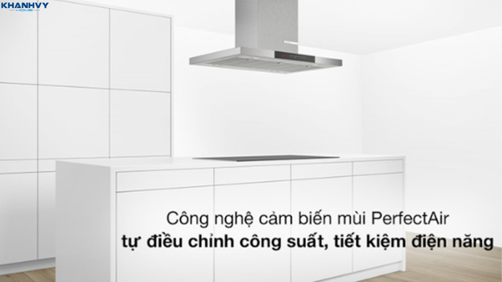 Công nghệ Cảm biến PerfectAir Sensor: Tự động điều chỉnh công suất hút theo lượng khói và mùi thực tế, đảm bảo hiệu quả lọc sạch tối ưu đồng thời giữ cho độ ồn ở mức thấp nhất.