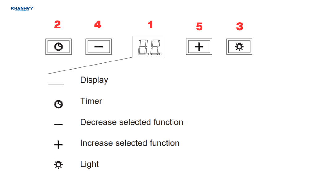 Ký hiệu và các nút chức năng trên máy hút mùi Teka: