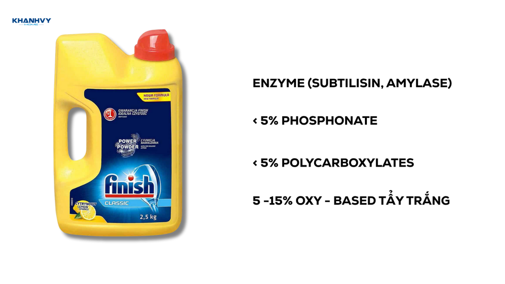 Bột rửa bát Finish được xem là một trong những sản phẩm phổ biến và đáng tin cậy nhất hiện nay nhờ giá thành hợp lý, hiệu quả vượt trội và độ an toàn cao. Với công thức tổng hợp 3 trong 1, sản phẩm kết hợp bột rửa, muối làm mềm nước và nước làm bóng, giúp làm mềm độ cứng của nước, tăng khả năng làm sạch và mang lại độ sáng bóng hoàn hảo cho chén đĩa.