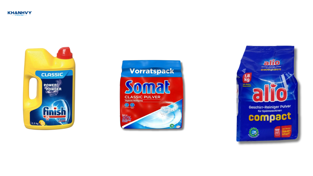 Bột rửa bát là sản phẩm tiếp xúc trực tiếp với bát dĩa, nơi đựng thức ăn hằng ngày, vì vậy việc chọn thương hiệu uy tín là vô cùng quan trọng. Bạn nên ưu tiên các thương hiệu chuyên dụng và được kiểm nghiệm an toàn như Finish, Somat, Alio,... Những thương hiệu này không chỉ đảm bảo khả năng làm sạch tối ưu mà còn có công thức thân thiện với sức khỏe và được chứng nhận tương thích với nhiều dòng máy rửa bát.
