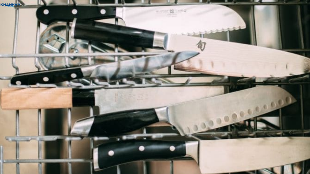 Dao kéo sắc bén có cán gỗ hoặc nhựa: Nên rửa bằng tay để bảo vệ độ sắc của lưỡi dao và tránh hư hại cán dao do nhiệt độ và hóa chất. Dao cũng có thể làm trầy xước khoang máy nếu đặt không đúng.