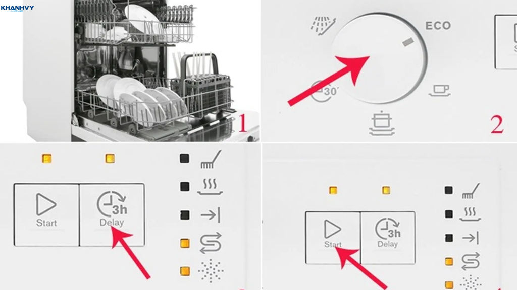 Hẹn giờ khởi động (Delay Start): Cho phép người dùng đặt lịch thời gian cho máy bắt đầu rửa theo thời điểm mong muốn, giúp linh hoạt và tiện lợi trong sinh hoạt hàng ngày.
