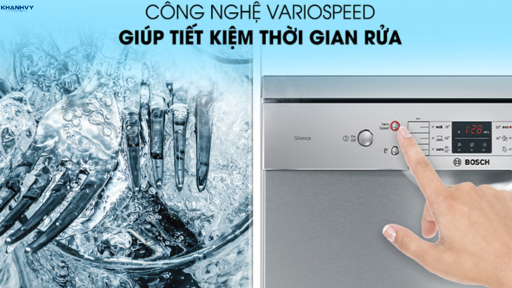 Tiết kiệm nước tối ưu chỉ khoảng 6,5 lít cho mỗi chu trình rửa, tiết kiệm hơn rất nhiều so với rửa bằng tay truyền thống. Máy còn có chức năng VarioSpeed giúp rút ngắn thời gian rửa lên đến 66%, tiết kiệm cả thời gian và năng lượng.