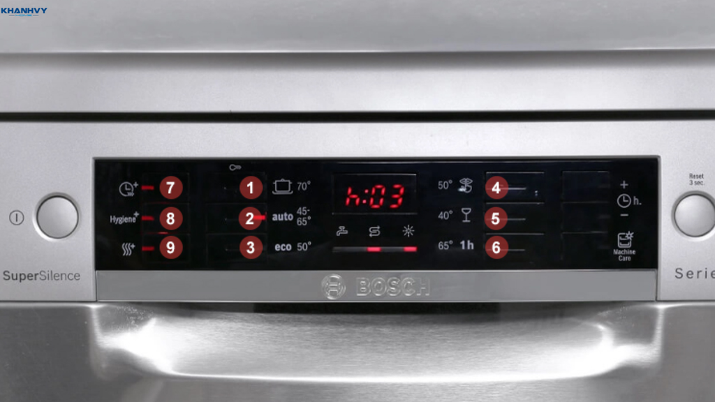 Rửa chuyên sâu (Intensive) | 70°C | Xử lý vết bẩn cứng đầu như dầu mỡ, thức ăn khô lâu ngày | Nhiệt độ cao, áp lực nước mạnh, làm sạch triệt để |