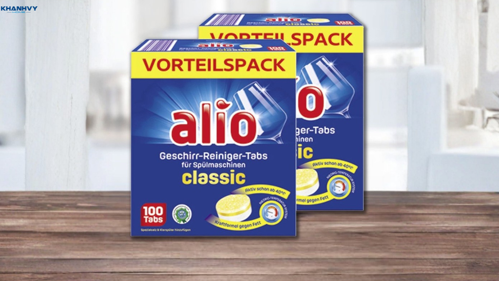 Alio là thương hiệu nội địa Đức được nhiều người tin tưởng với giá cả hợp lý và chất lượng tốt. Viên rửa bát Alio sử dụng công nghệ Nano tiên tiến giúp diệt khuẩn, khử mùi và bảo vệ máy rửa bát hiệu quả. Sản phẩm có khả năng tẩy sạch các vết bẩn thông thường và dầu mỡ, đồng thời làm bóng bát đĩa khá tốt. Dòng sản phẩm Alio All-in-One còn tích hợp chức năng tương tự như viên rửa đa năng, bao gồm cả muối và nước làm bóng, giúp đơn giản hóa quá trình sử dụng. Viên rửa Alio phù hợp với nhiều loại máy rửa bát và được đánh giá cao về hiệu suất trên thị trường Việt Nam.