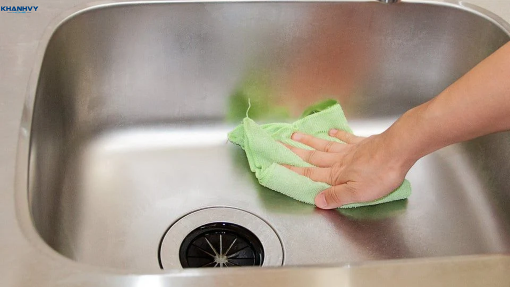 Chậu rửa là nơi tiếp xúc trực tiếp với dầu mỡ, cặn thức ăn và nước thải, vì vậy cần được vệ sinh thường xuyên để ngăn vi khuẩn tích tụ. Sau mỗi lần rửa, nên rửa sạch chậu rửa bằng nước rửa chén hoặc baking soda để loại bỏ mảng bám và mùi hôi. Miếng rửa bát và khăn lau là hai vật dụng dễ bị ẩm, bẩn và sinh vi khuẩn nếu không được thay định kỳ. Sau khi sử dụng, hãy giặt sạch, vắt khô và phơi nơi thoáng gió. Nên thay miếng rửa bát mới sau 1–3 tuần tùy tần suất sử dụng. Khăn lau bát chỉ nên dùng để lau bát đã khô, tuyệt đối không dùng chung với khăn lau bàn hay khăn lau bếp để tránh lây nhiễm chéo.