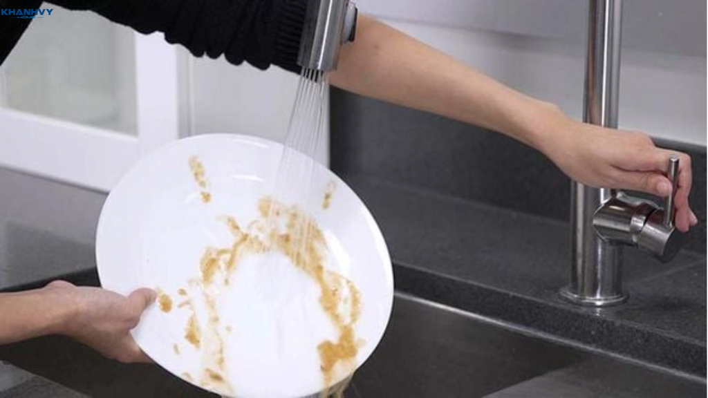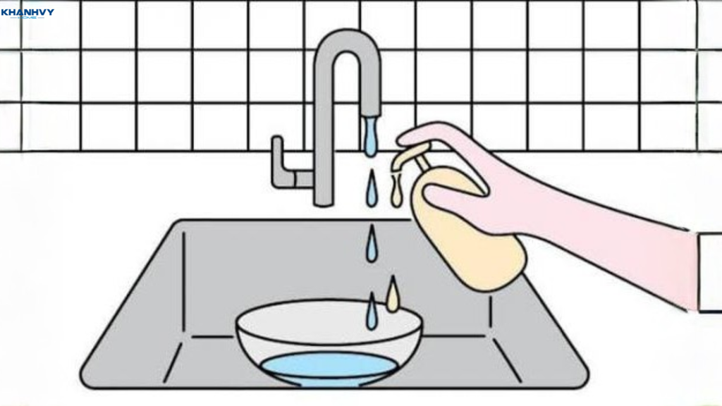 Nhiều người thường đổ trực tiếp nước rửa chén đặc lên miếng rửa, khiến khó xả sạch và dễ để lại dư lượng hóa chất. Pha loãng nước rửa chén trong chậu hoặc trong chai nhỏ sẽ giúp tiết kiệm hơn và dễ rửa sạch hơn. Khi rửa, nên dùng nước ấm để giúp dầu mỡ tan nhanh, giảm thời gian chà rửa. Sau khi rửa xong, cần xả lại bằng nước chảy ít nhất 2–3 lần để đảm bảo loại bỏ hoàn toàn xà phòng, tránh tình trạng bát đĩa còn nhớt hoặc có mùi hóa chất.