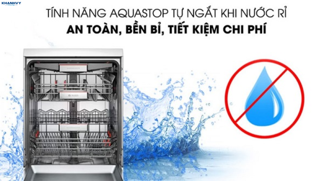 Bên cạnh đó, máy rửa chén cần có tính năng chống tràn và chống rò rỉ, thường được trang bị các cảm biến an toàn phát hiện khi có sự cố về nước như rò rỉ hoặc ngập nước trong máy. Khi phát hiện lỗi, máy sẽ tự động ngắt nguồn cấp nước hoặc dừng hoạt động để tránh gây hư hại cho máy và các thiết bị xung quanh, đảm bảo an toàn cho người dùng.