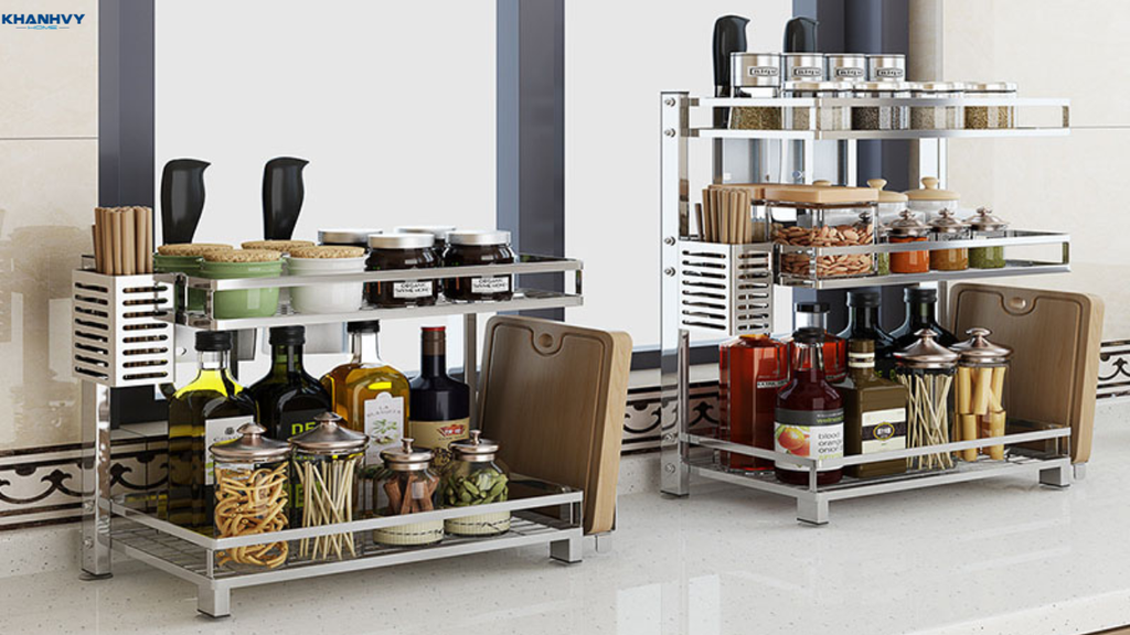 Dùng kệ đa năng nhiều tầng để tối ưu diện tích bếp