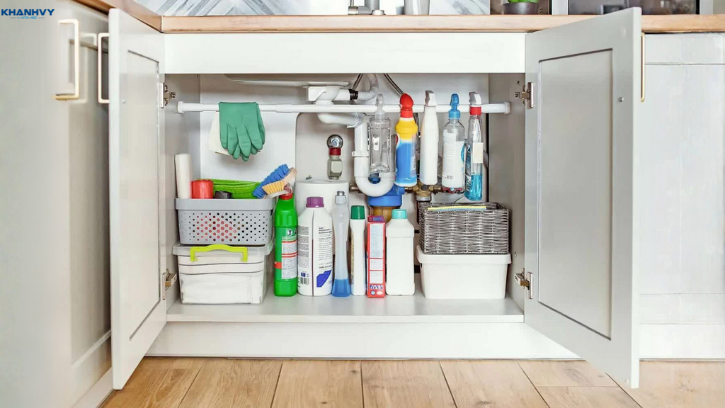 Sử dụng khu vực dưới bồn rửa để đựng các chất tẩy rửa